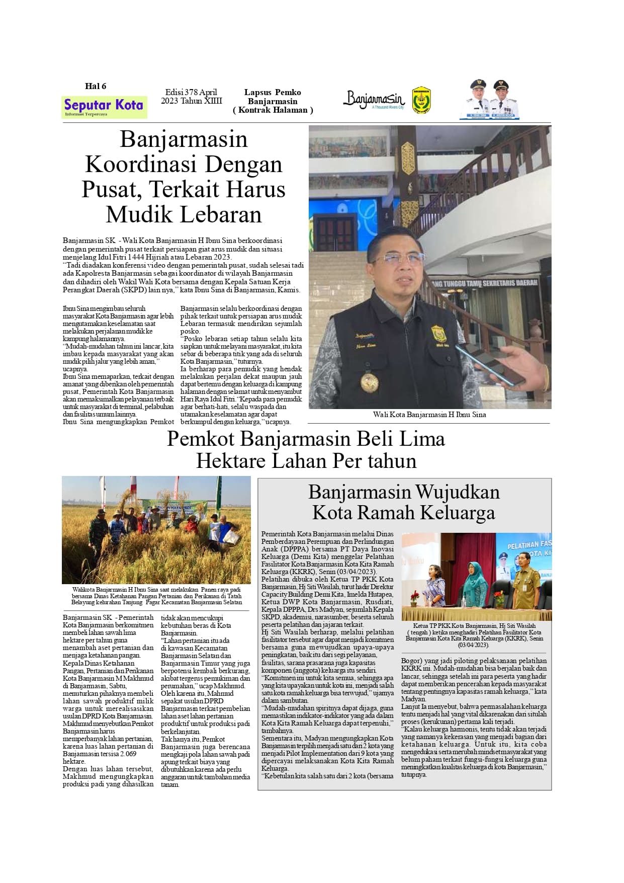 Kontrak Halaman Pemko Banjarmasin Bulan April di SKM.Seputar Kota edisi 378 Tahun 2023