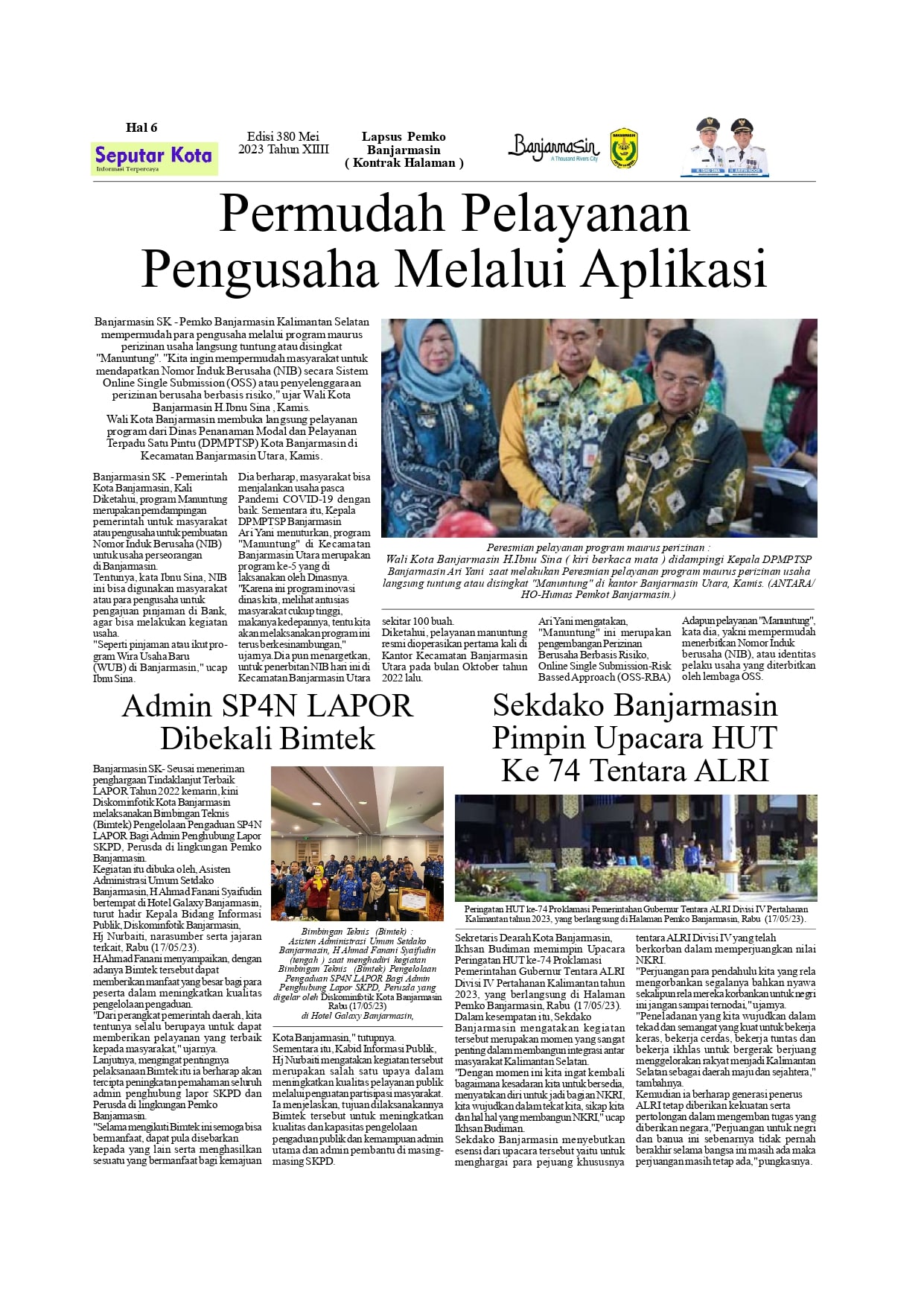 Kontrak Halaman Pemko Banjarmasin Bulan Mei ke 1 di SKM.Seputar Kota edisi 380 Tahun 2023